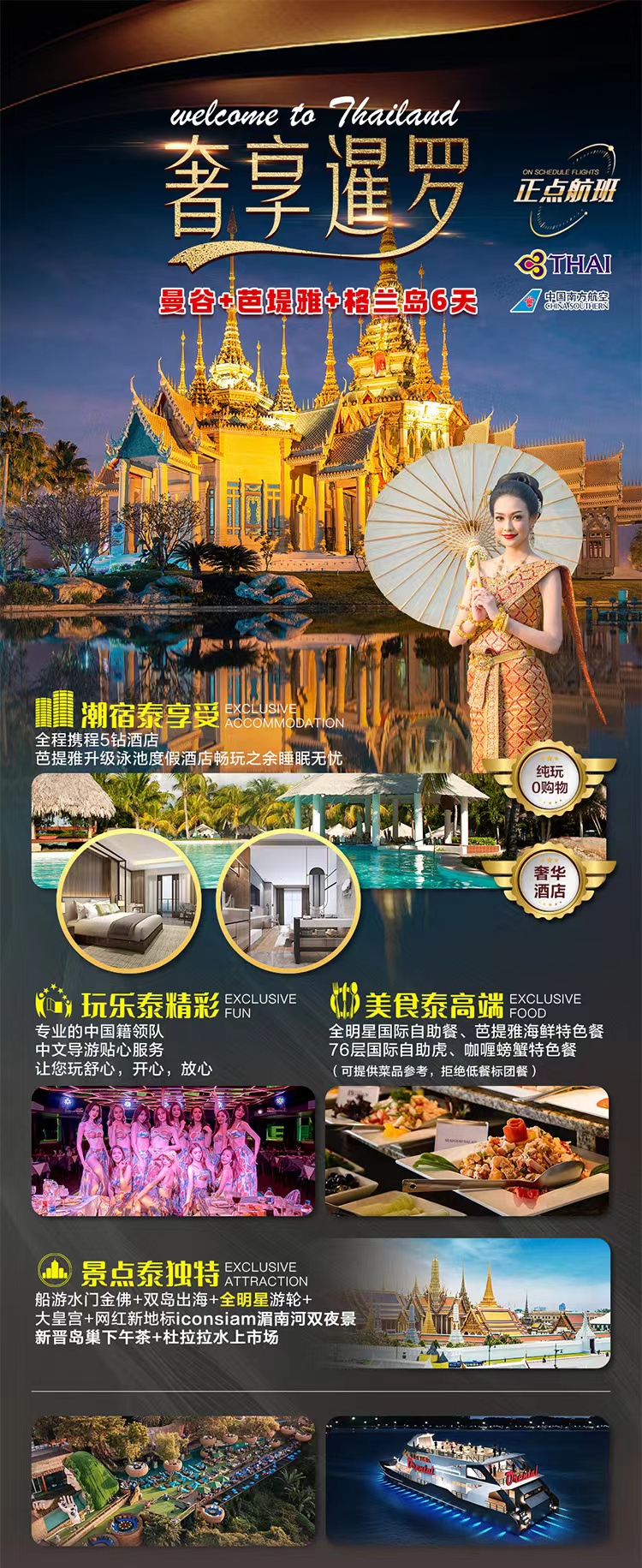 【奢享暹罗】正点航班 纯玩泰国曼谷、芭堤雅双飞6天5晚