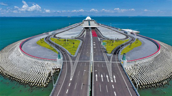 港珠澳大桥是中国境内一座连接中国香港、广东珠海和中国澳门的桥隧工程,位于中国广东省珠江口伶仃洋海域内。因其超大的建筑规模、空前的施工难度以及顶尖的建造技术而闻名世界,是世界上总体跨度最长的跨海大桥。